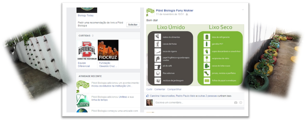 Interação com os alunos e divulgação do site Pibid UNIFESO e das atividades de educação ambiental desenvolvidas pelos mesmos. Dentre elas podemos destacar a criação de hortas didáticas em garrafa pet e em pneus.