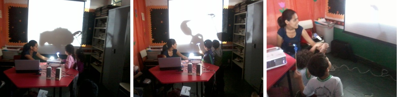 TEATRO DE SOMBRAS: Após a criação de uma historia coletiva intitulada pelos alunos de "Sítio do pica-pau amarelo", foi realizado um reconto desta história por meio de um teatro de sombras.