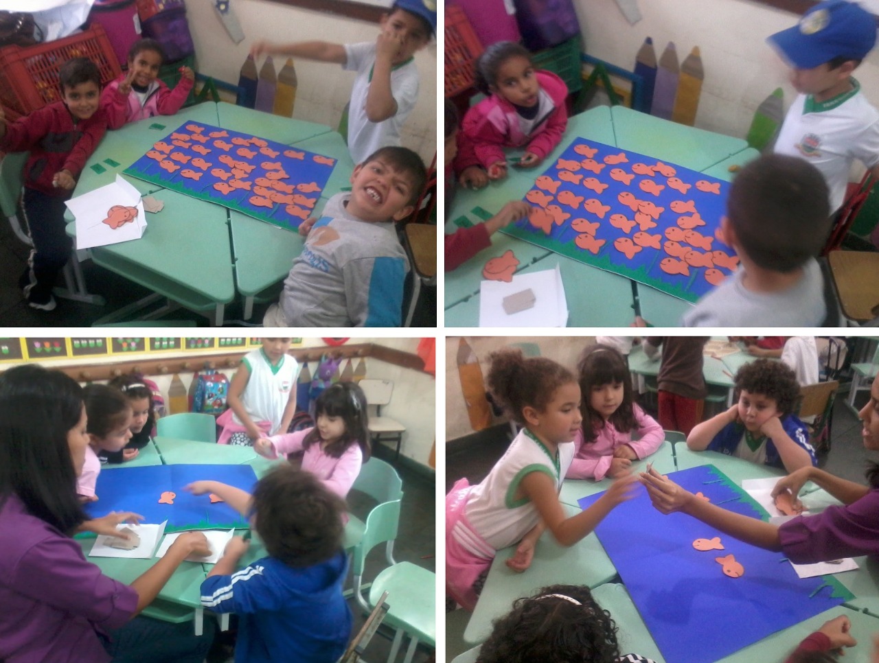 JOGO DOS PEIXINHOS: Visando trabalhar a matemática com a turma, foi realizada uma tarde de jogos matemáticos que envolviam uma temática referente ao projeto de trabalho que estava sendo desenvolvido pela turma.