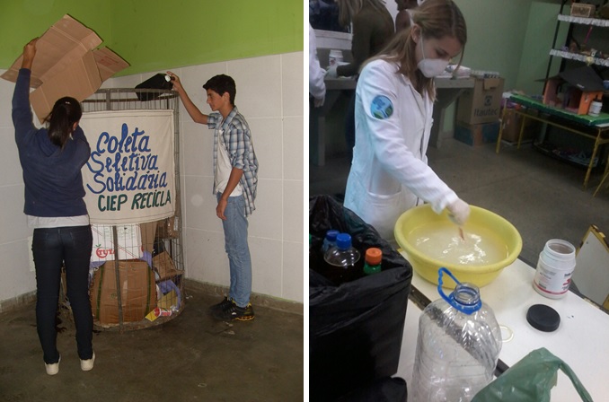 Os Pibidianos, junto a professora Fernanda Ribeiro, realizaram um trabalho para conscientizar alunos e a comunidade de áreas do bairro Rosário em Teresópolis RJ. O projeto tem parceria com a SEEDUC, que disponibilizou na escola uma grade de coleta de descartáveis, onde o recolhimento é feito uma vez por semana.